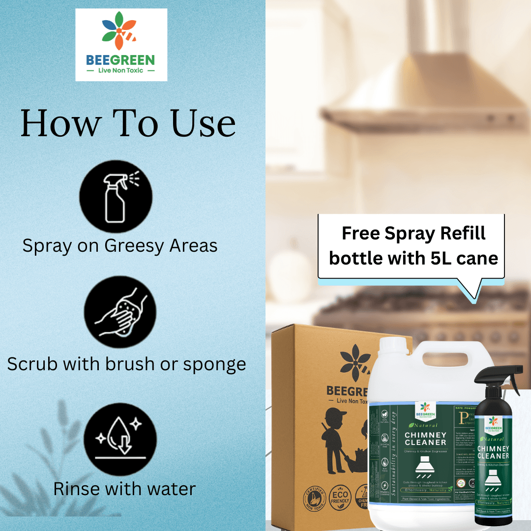 Keep your kitchen grease-free and sparkling clean with BeeGreen Natural Chimney Cleaner- Kitchen Degreaser. Formulated with plant-based, non-toxic ingredients, this cleaner effectively cuts through stubborn oil, smoke stains, and grease deposits that build up in chimneys, stoves, exhaust fans, and other kitchen surfaces.