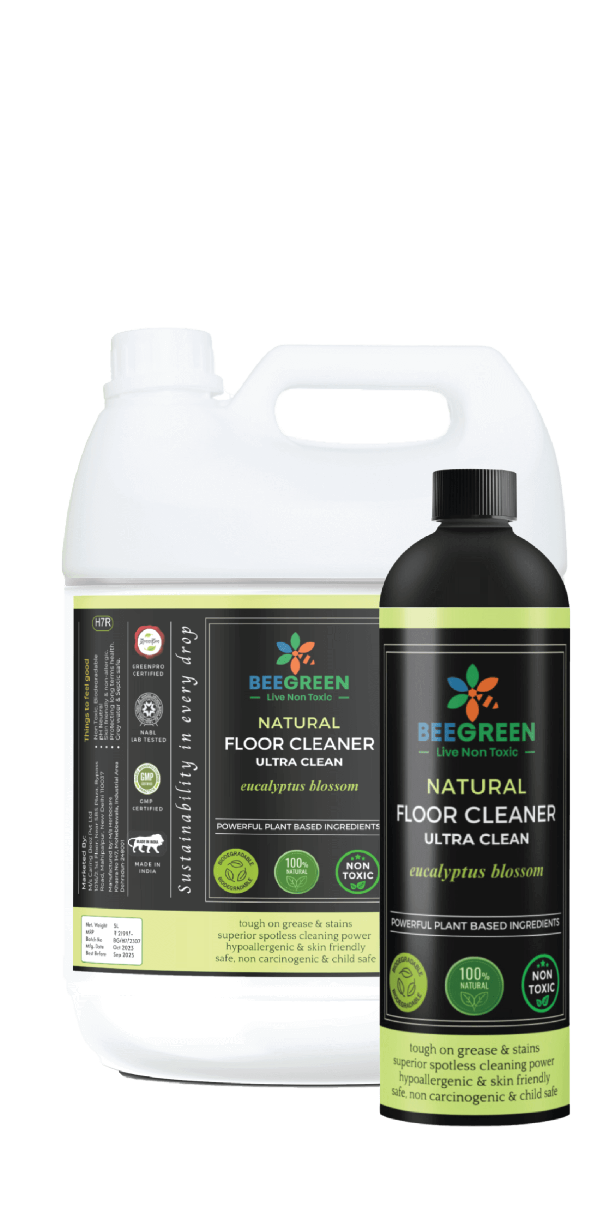Experience the unbeatable cleaning power of Beegreen’s Natural Floor Cleaner. Say goodbye to harmful chemicals and embrace a natural and eco-friendly approach to floor cleaning. Our natural, organic, and biodegradable formula is designed to tackle dirt and grime on all types of floor surfaces, including marble, wood, and tile. Suitable for a wide range of surfaces, this non-toxic floor cleaner effortlessly removes scuff marks without harsh chemicals. Vegan, palm oil-free, and biodegradable, it ensures a safe and sustainable cleaning experience. With NABL Lab Test approval and GreenPro certification from CII, our floor cleaner meets international standards for non-toxicity, efficacy, and sustainability. Transform your floors and create a healthier environment today.